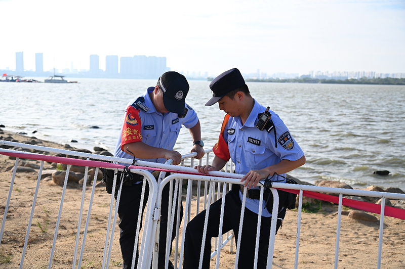 红谷滩区秋水广场国庆烟花晚会现场,特警、治安、交警多警种协同作战,实施全域布控。无人机空中巡航实时回传画面,地面力量驻守关键节点,形成空地联动、动静结合的防控网络。西湖区、青云谱区、新建区和进贤县等区域同步强化社会面清查整治,核查重点场所身份信息,挤压违法犯罪空间。