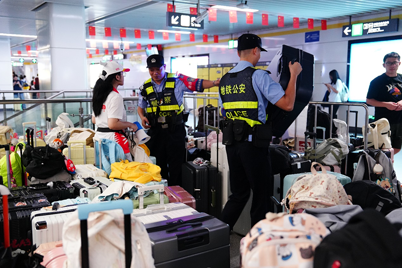 地铁站点作为客流集散枢纽,迎来高强度运转。地铁警察支队前置服务关口,设立便民服务岗,提供寻人找物、行李寄存、手机充电、路线指引等贴心服务。节日期间,民辅警累计帮助10余名走失儿童安全返家,找回遗失物品逾百件,调解乘客纠纷十余起,接受咨询超5000人次,寄存行李3000余件,让“最后一公里”的出行更有温度。