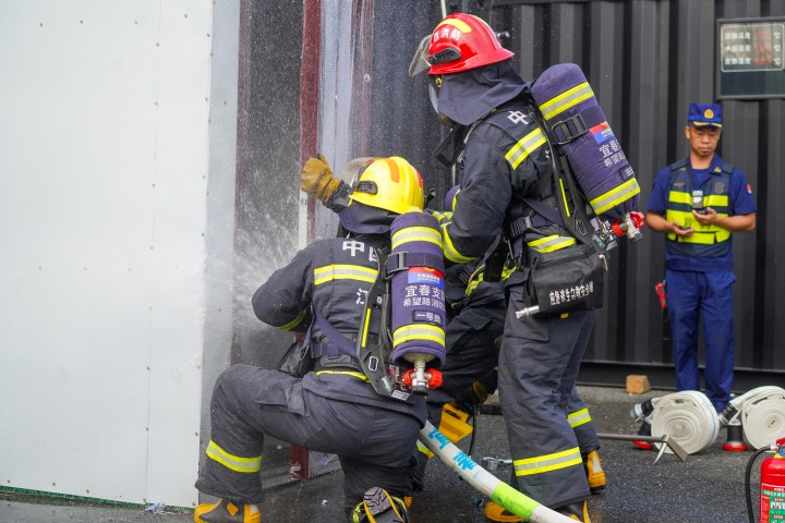 赛场上,队员们斗志昂扬、锐不可当。深入真烟真火训练装置内救人项目中,攻坚小组交替掩护,顶着烈焰开辟救生通道;乡镇政府专职队比拼中,队员们凭借“打早、灭小”的精准战法,快速处置模拟村落火灾,展现过硬本领。经过两天半紧张激烈的角逐,上饶、赣州、九江、抚州、新余队分获整建制建筑火灾实战操法项目前五名,吉安、九江、鹰潭、上饶、景德镇队分获乡镇政府专职队操法总分前五名。
