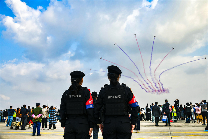 当赣江畔的马拉松热潮渐退,蓝天之上的飞行大会又拉开帷幕。当万众仰望飞机尾焰划过晴空之时,南昌市公安局高新分局的女子巡逻队步履不停,以藏蓝的细腻守护着会场安宁。