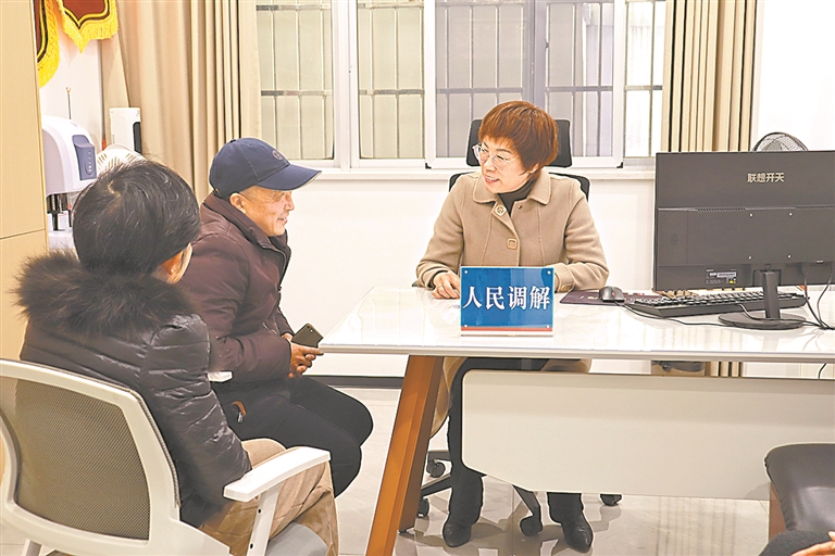 面对婚姻家庭中关于离婚、抚养与继承的纷争,她以法理和真情寻求最大公约数;当邻里间因噪声、排水或公共空间使用而各执一词时,她用耐心与智慧划定和睦的边界;对于因合同履行、损害赔偿引发的权益纠纷,她则以事实为依据,为双方架起沟通的桥梁。她,就是新枫街道“锦芝”调解室负责人吴锦芝。