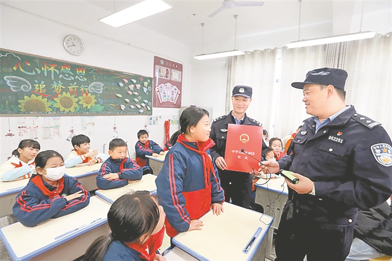 2021年,新余市公安局建立“法治建设指导员”制度,从300余名符合“有兴趣、有时间、有精力、有水平”标准的民警中精选90人,推进“一人对接一村一企一校”。