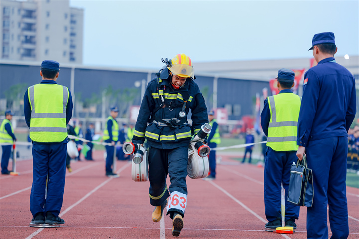 竞赛贯彻“救人第一”指导思想,采取“推荐+抽签”方式进行,涵盖大队全勤指挥部、消防站指挥员、攻坚组队员、灭火战斗员、驾驶员、通信员、接处警调度员等7个岗位人员参赛,设置辖区熟悉、无人机操控综合操、通信线材制作操、综合体能操、大队全勤指挥部综合应用操、抢险救援消防车应用操、攻坚组内攻灭火救援操等12个竞技项目,并首次采取整建制实战化的竞赛形式,将真火烟热训练设施融入竞赛环节,全面检验单兵体技能、国家队与专职队协同、班组配合、指挥调度及临机处置能力。