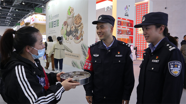 在展馆内设立“一站式”警务服务点,现场提供咨询、调解、宣传等便捷服务,让问题解决在萌芽、服务延伸至身边。巡逻民警主动走访展位,倾听诉求,排忧解难。