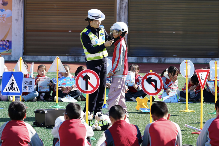 12月10日,在万载中等专业学校的操场上,几个西瓜从高处扔下,戴头盔的西瓜完好无损,未戴的瞬间碎裂。万载县公安局交管大队民警用直观的实验给学生们上了一堂生动的交通安全课,还让大家站在警车四周体验驾驶视觉盲区。这种沉浸式教学本月也在泰和、峡江等多地的校园开展,让孩子们“知危险、会避险”。