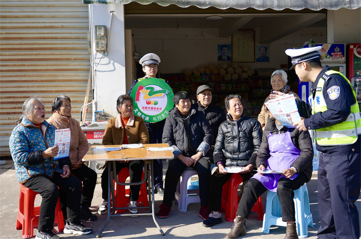 近日,在抚州市临川区笠上村,抚州市公安局交管支队临川大队民警用方言讲解农用车违法载人的危害;庐山市公安局交管大队民警把“平安挂历”送到村民手中,上面的安全提示一目了然。