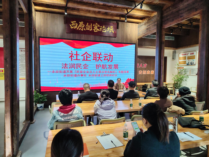 此外,社区通过网格员走访企业征集诉求、线上问卷等方式,形成需求清单,并定制普法课程。同时,根据需求清单,邀请高校讲师及专职律师,采用“专题授课+案例研讨+现场答疑”模式,以法治力量护航民营企业纾困解难、稳健前行。