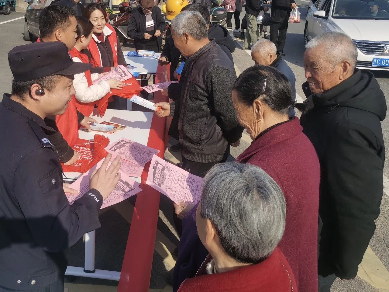 近日,上高县镇渡乡综治中心联合上高县公安局镇渡派出所、上高县司法局镇渡司法所及各村网格员,在赶集日扎实开展防范电信网络诈骗“春风行动”集中宣传活动,将识诈、防诈、反诈的知识与技能送到群众身边。
