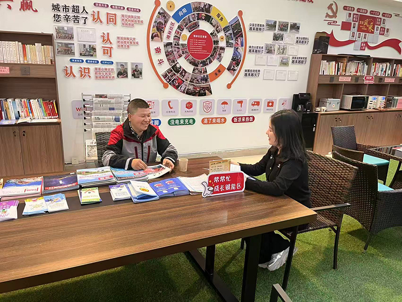 此前,一名网约配送员在驿站“意见反馈本”上写下送餐摔伤的维权困惑。驻点律师团队主动联系,为其提供免费咨询,并清晰梳理维权路径。驿站还打造了“暖心窝政策直通车”,律师定期用身边案例以案说法,为骑手们送上接地气的“普法大餐”。从基础保障到助力成长,“格格屋暖新驿站”正在为新就业群体搭建具有双重意义的“能量补给站”。