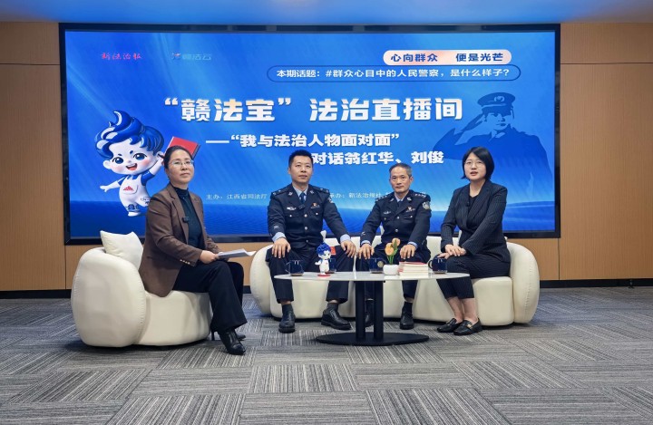 3月13日晚的“赣法宝”法治直播间里,并排坐着两位气质迥异的警察。