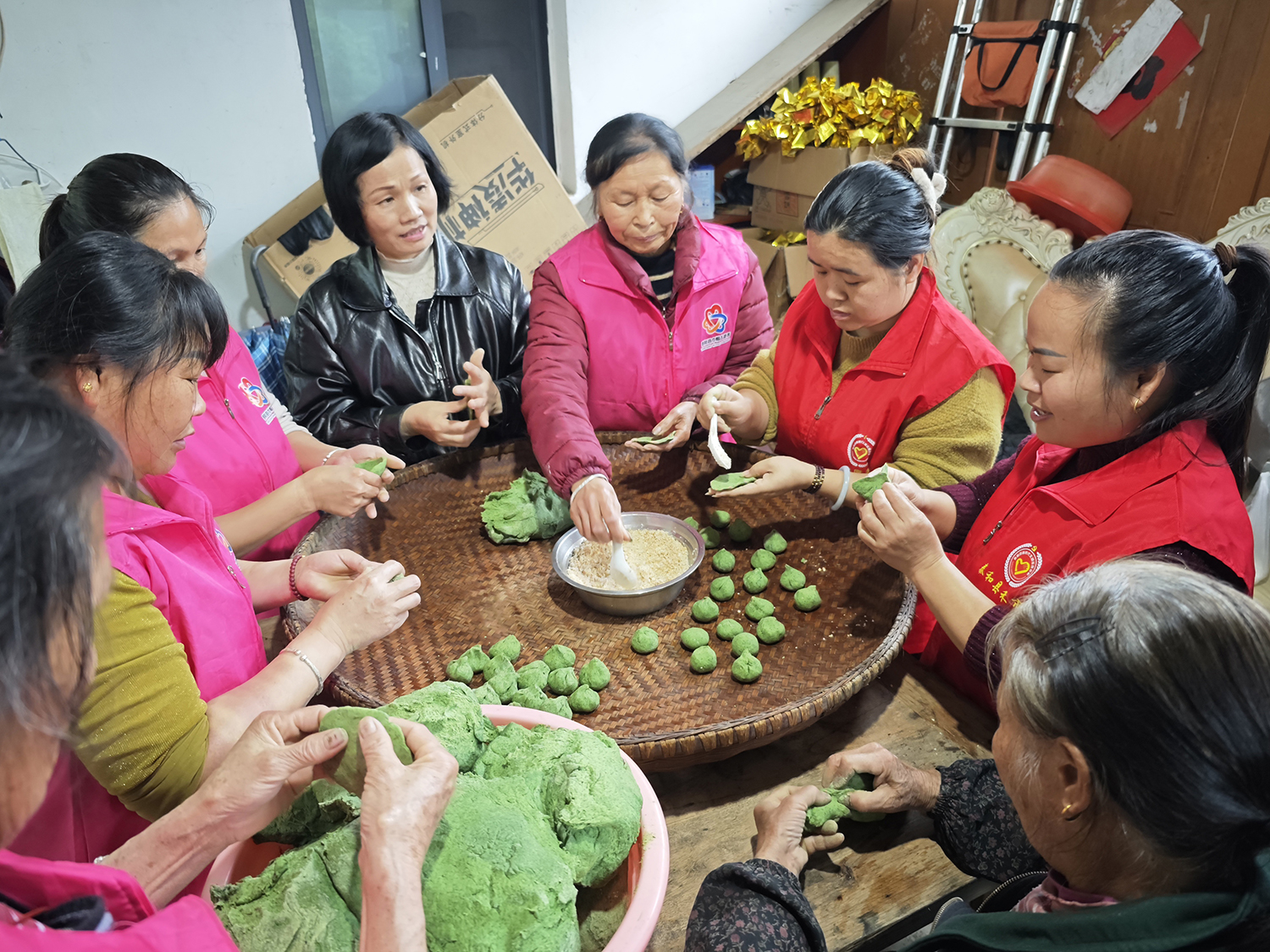 近日,泰和县禾市镇江北村组织包艾米果活动,该村“巾帼帮帮团”成员与村民围坐在一起,边包艾米果边拉家常,分享见闻与困惑。听到村民肖大姐抱怨家庭关系紧张时,“巾帼帮帮团”成员便坐到她身旁耐心疏导,一旁的妇女也帮忙支招。